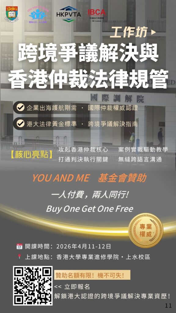 在企業全球化與跨境投資日益頻繁的背景下,企業在國際經營過程中面臨的法律爭議與合規風險不斷增加。如何在不同法域之間有效解決跨境爭議,並利用香港作為國際仲裁中心的制度優勢,已成為企業出海與全球布局的重要課題。