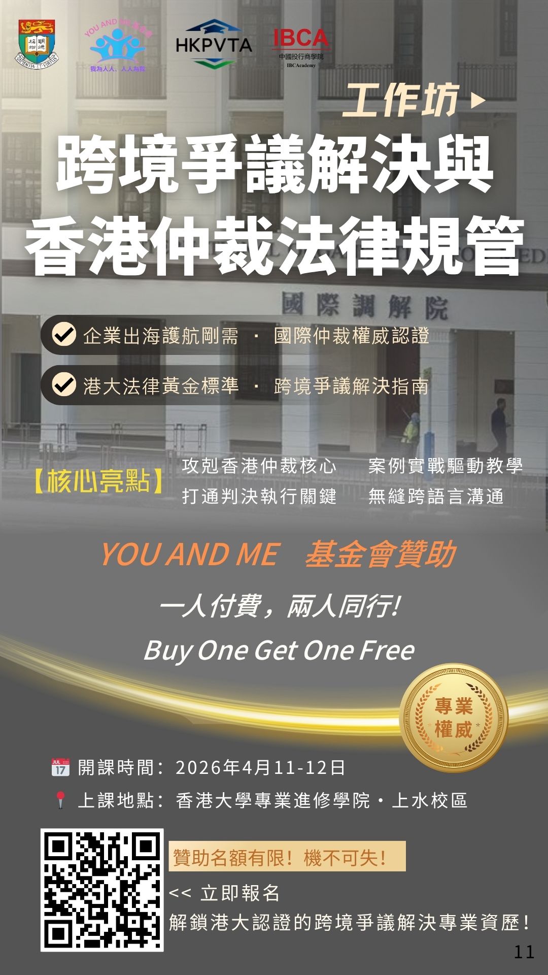 本工作坊聚焦跨境爭議解決與香港仲裁法律制度,系統解析香港仲裁法律框架、國際仲裁機制以及仲裁裁決在不同司法管轄區的執行問題,幫助企業與專業人士掌握跨境爭議解決的核心策略與實務操作。