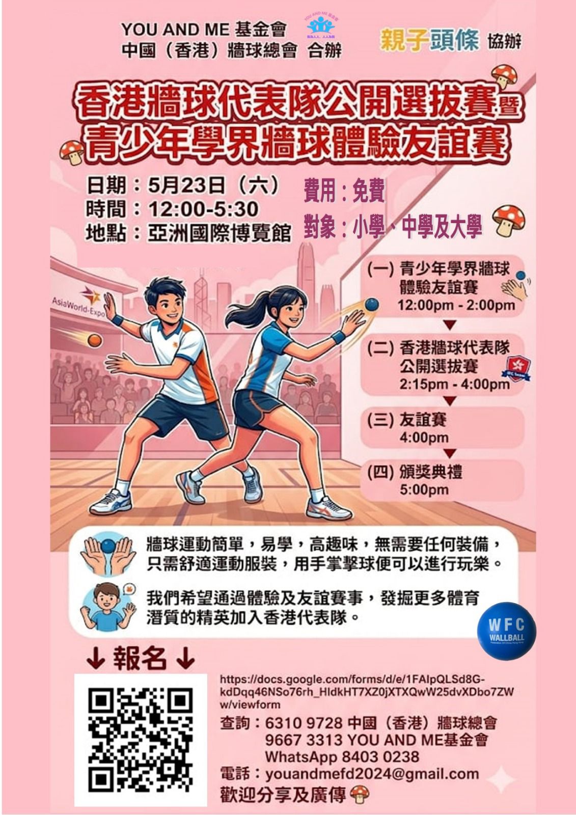 「香港牆球代表隊公開選拔賽暨青少年學界牆球體驗友誼賽」